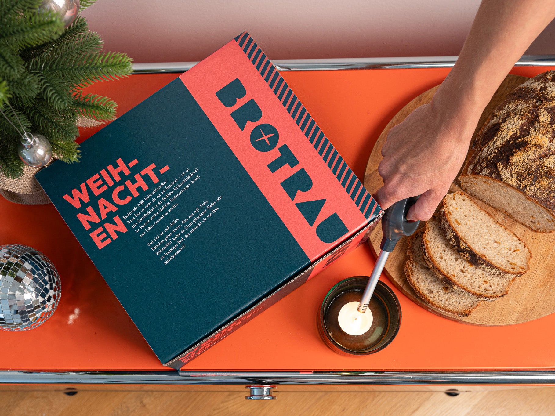 Die perfekte Geschenkidee für Brotgenießer – festlich verpackte Brotrausch Geschenkboxen mit allem, was den Zauber von Weihnachten ausmacht. Immer inkl. Holzbackform und wahlweise mit Brotbackmischungen, Stollen-Backmischung, Fruchtaufstrich oder Stullensalz